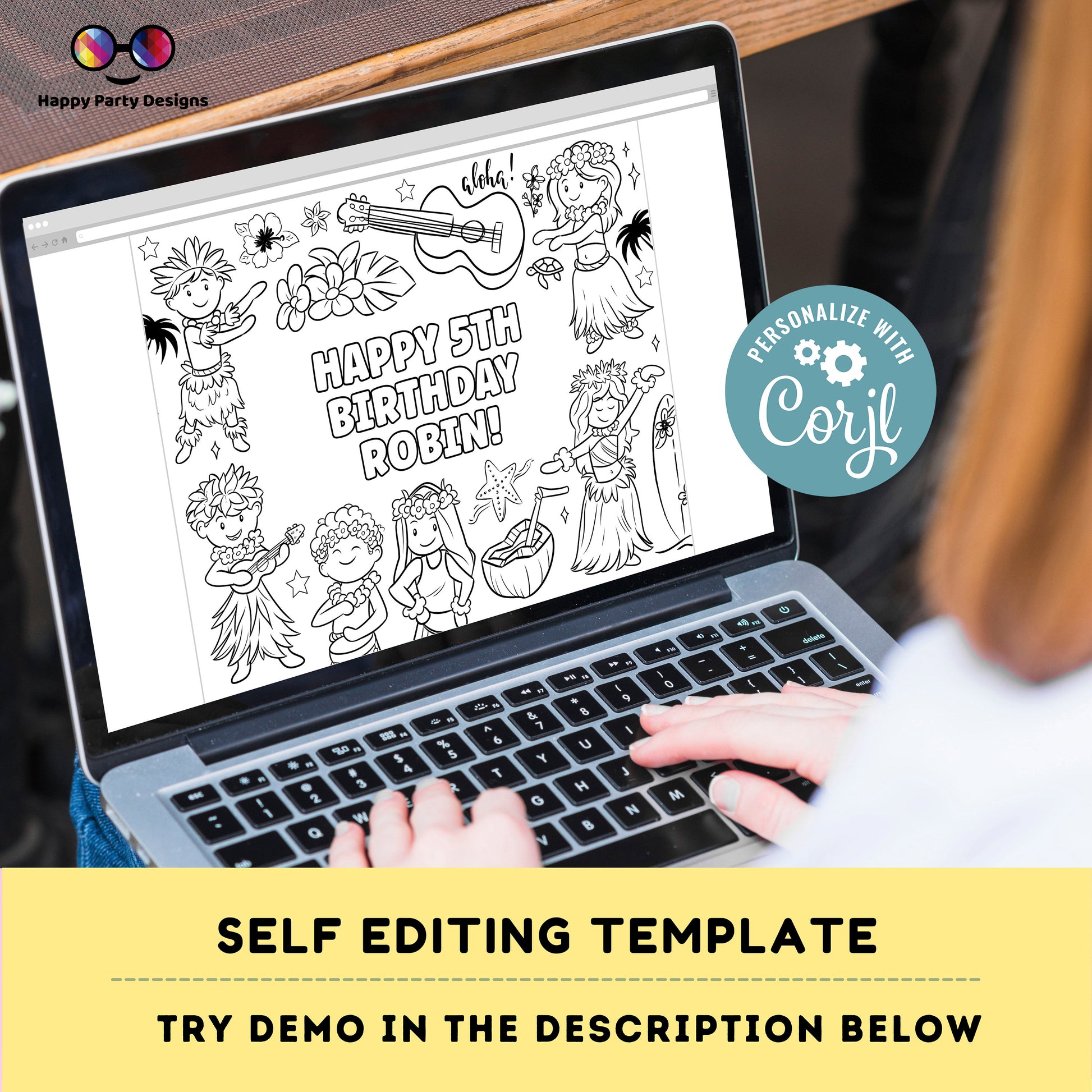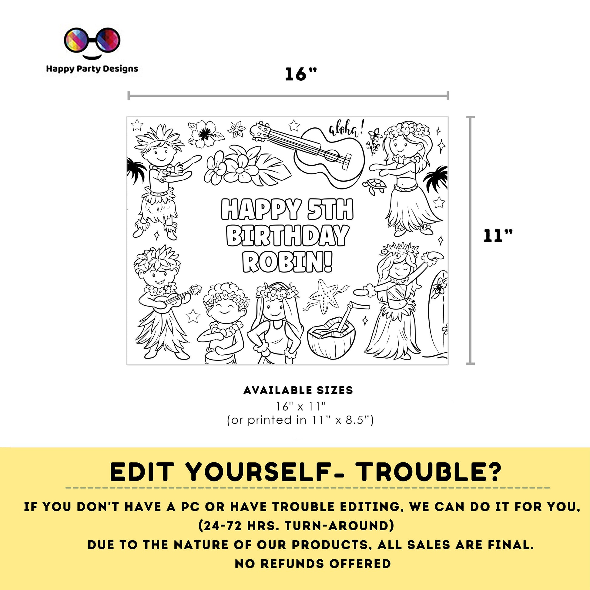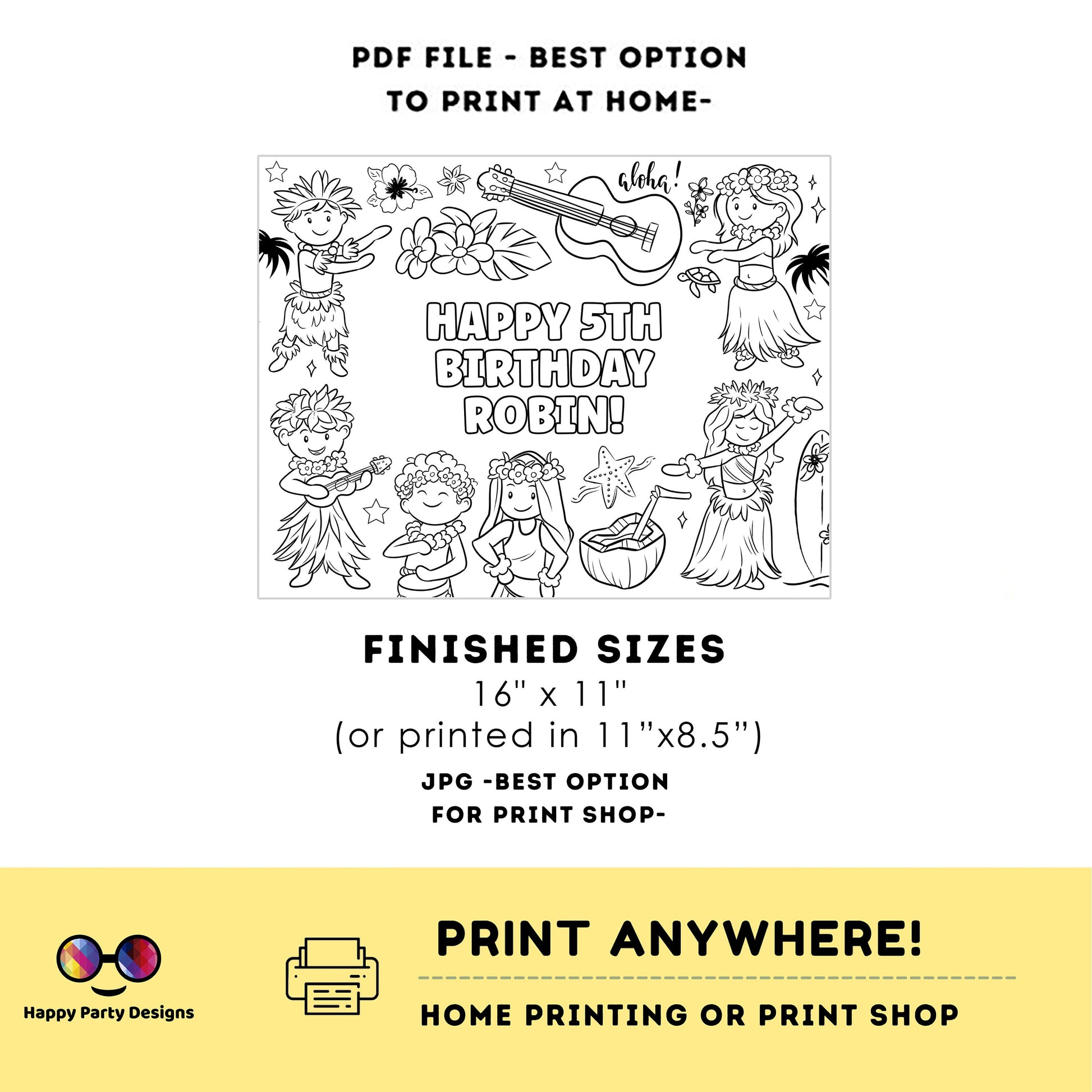 Hawaiian Luau Birthday activity, Tropical Party coloring page , Editable Customizable Template, Kids, Aloha, Lei Hawaii Party, Girl Birthday. INSTANT DOWNLOAD Fun in the Sun Birthday coloring page , Pool Party, Summer, Birthday activity, Editable.