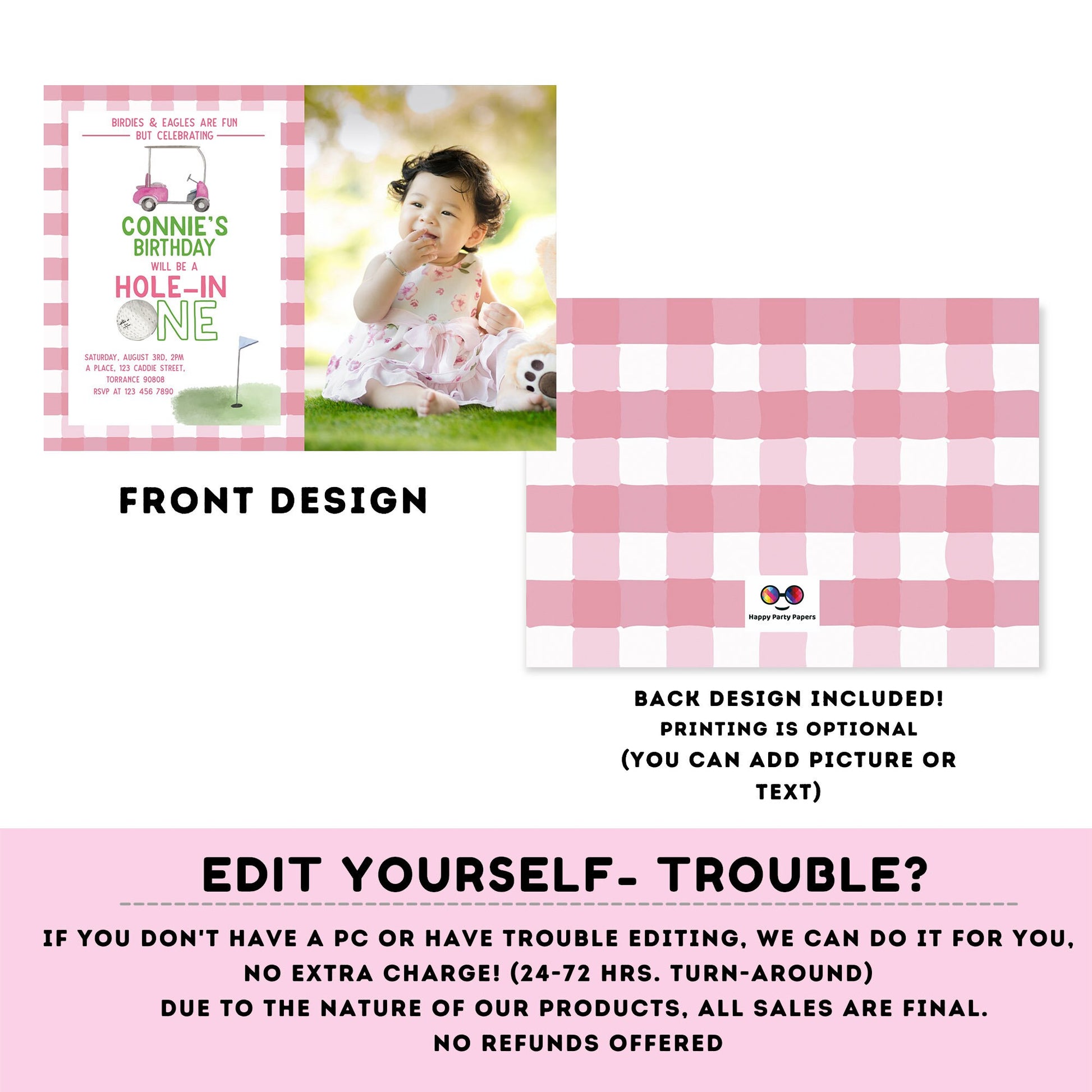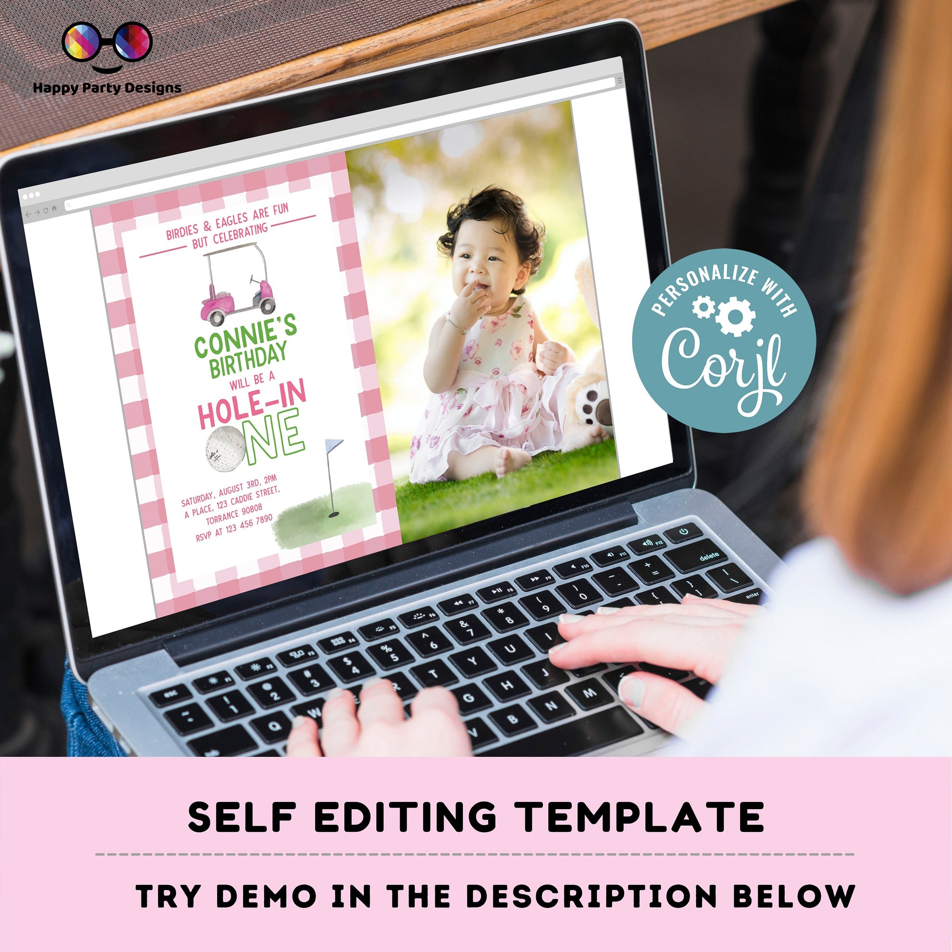Golf First Birthday Invitation, Hole in One Invitation, Masters Golf Invitation, Hole-in-One Party, EDITABLE invitation, INSTANT DOWNLOAD. Golf 1st Birthday Party Invitation, girl Golf First Birthday, Corjl Editable Template.