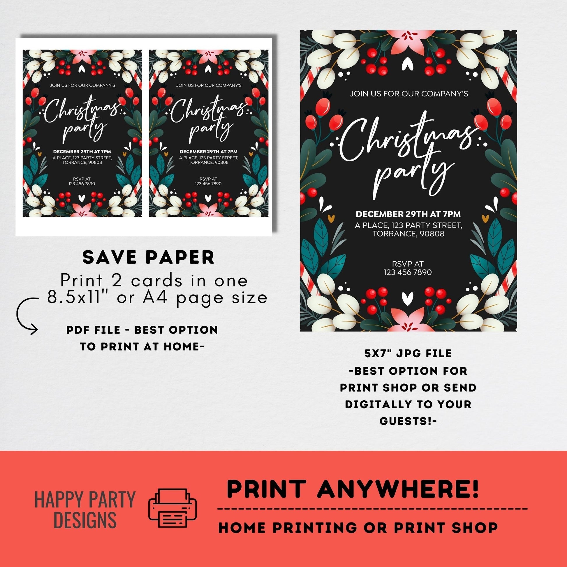 Editable Holiday Party Invitation | Christmas Party printable invite | Holiday Christmas Party Invitation | Christmas Dinner invite #A33