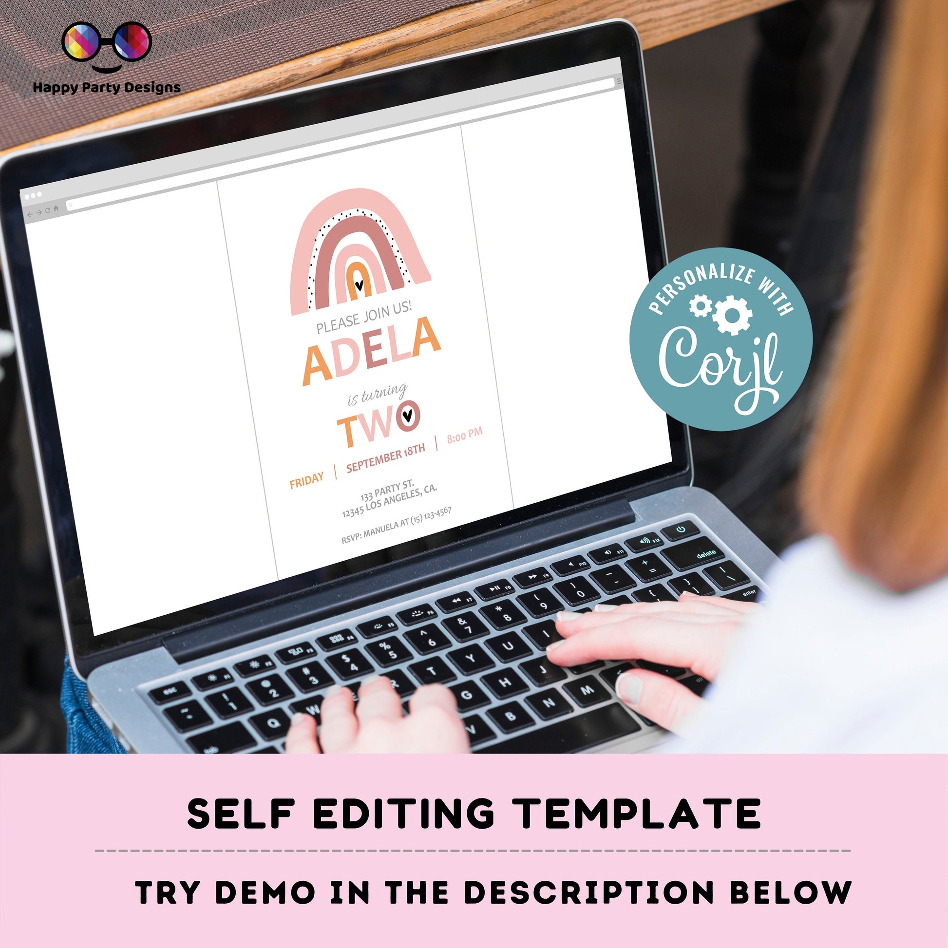Second birthday Rainbow Invitation | EDITABLE Invitation | Boho birthday Invitation | Rainbow Birthday | Digital File | Instant Download