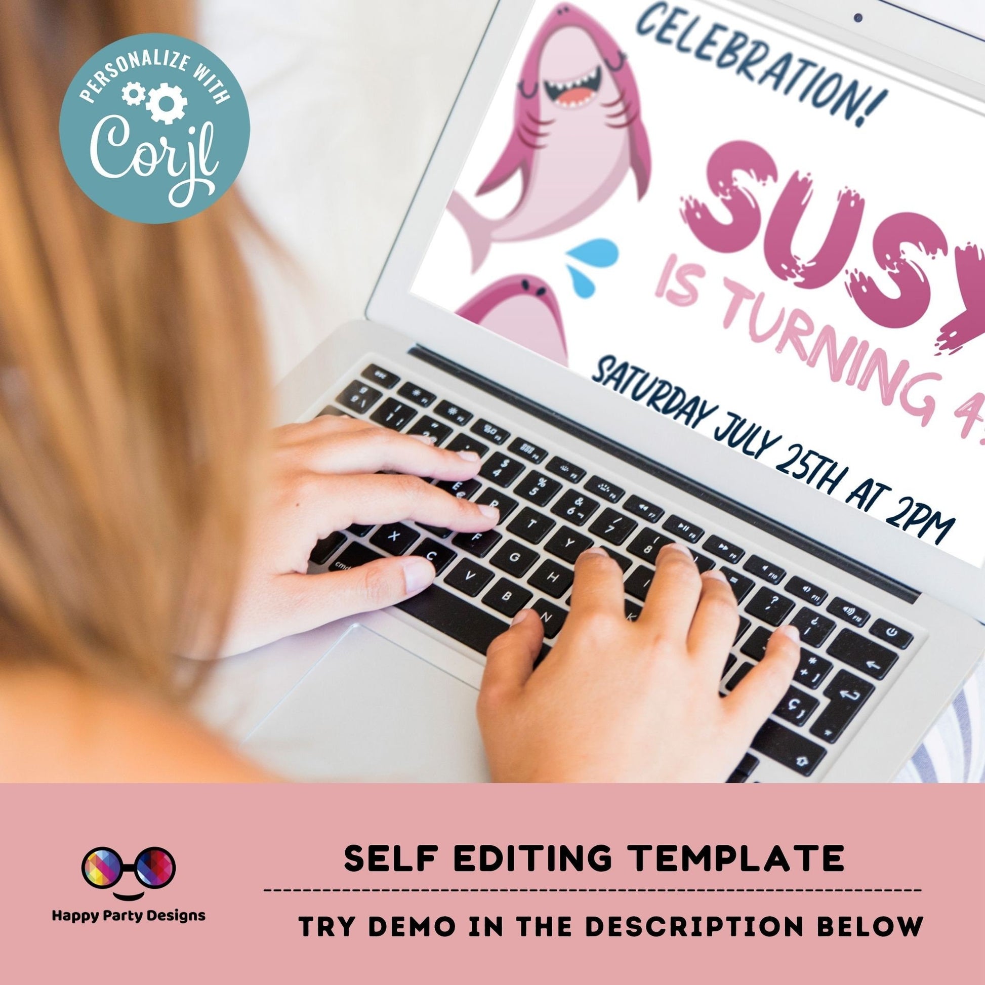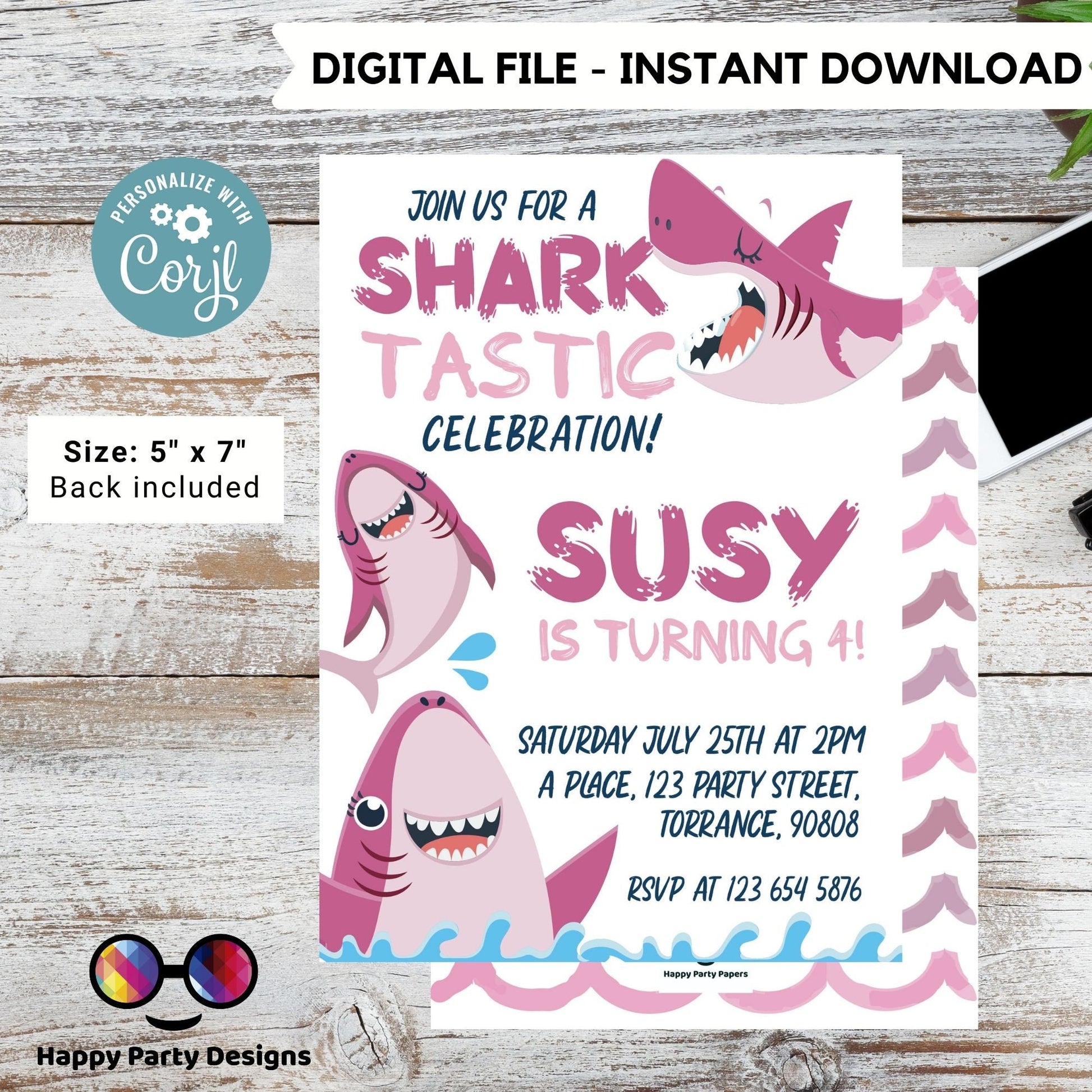 Shark Invitation | Editable Ocean Invitation | under the sea party | under the sea Evite | girl birthday | any age | editable on line #K146