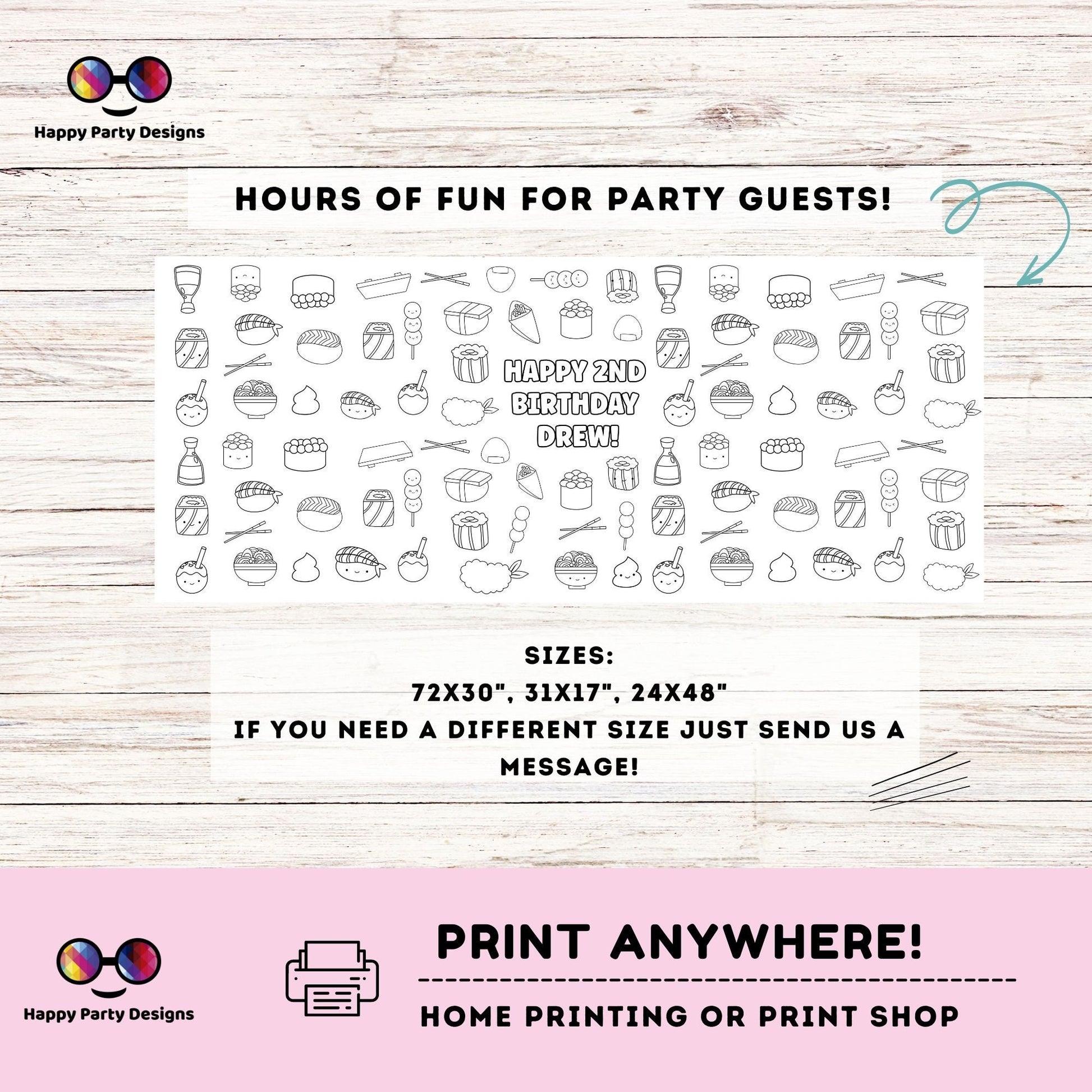 Printable giant poster to color, that you can use on the wall or as a table runner. A great activity for your party! The text is totally editable, so it's suitable for any age or occasion!