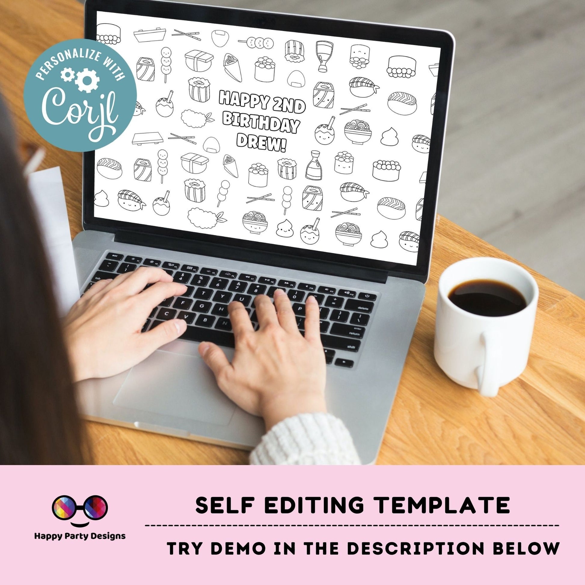 Sushi XL coloring page | Editable sushi birthday party coloring poster | Sushi party | Sushi party activity for kids |