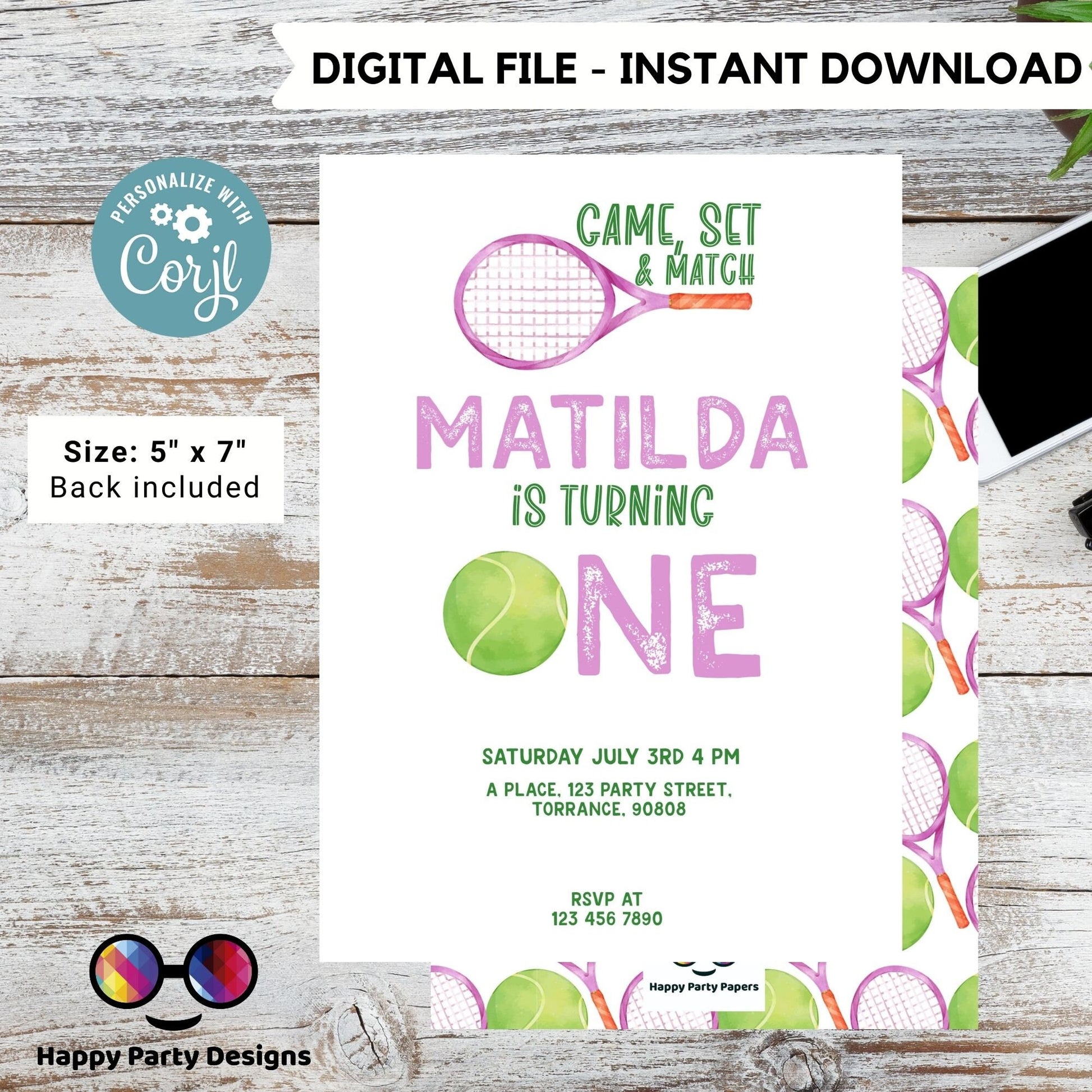 Tennis Birthday Invitation | Tennis Invitation for girl | Tennis Party | Tennis Game Invitation | minimalist | First Birthday | Print #K256