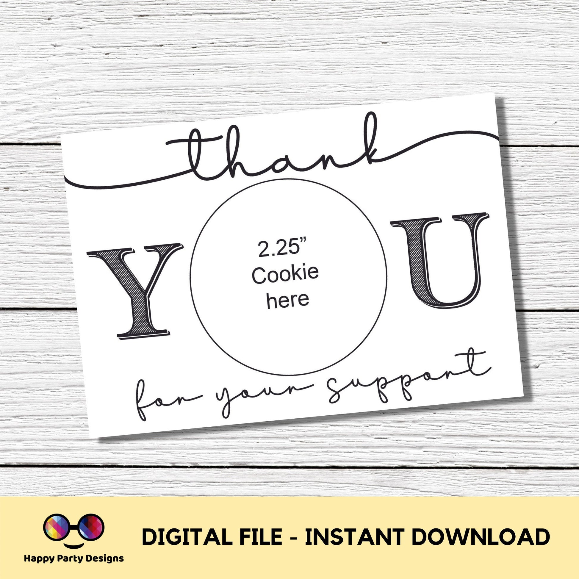 Thank You For Your Support Black and White Cookie Card | Printable Mini Cookie Card 3.5" X 5" | Packaging Mini Cookies | appreciation card